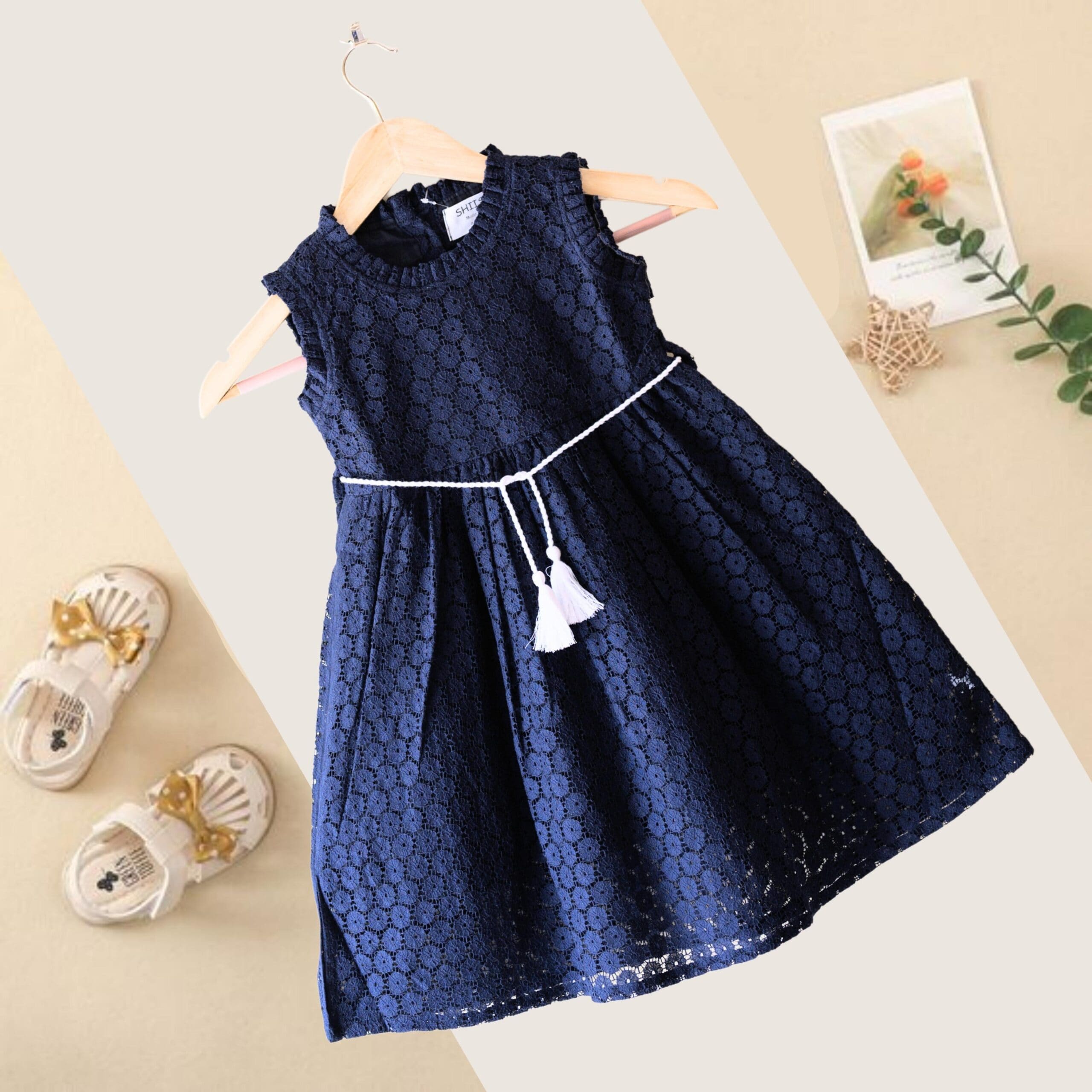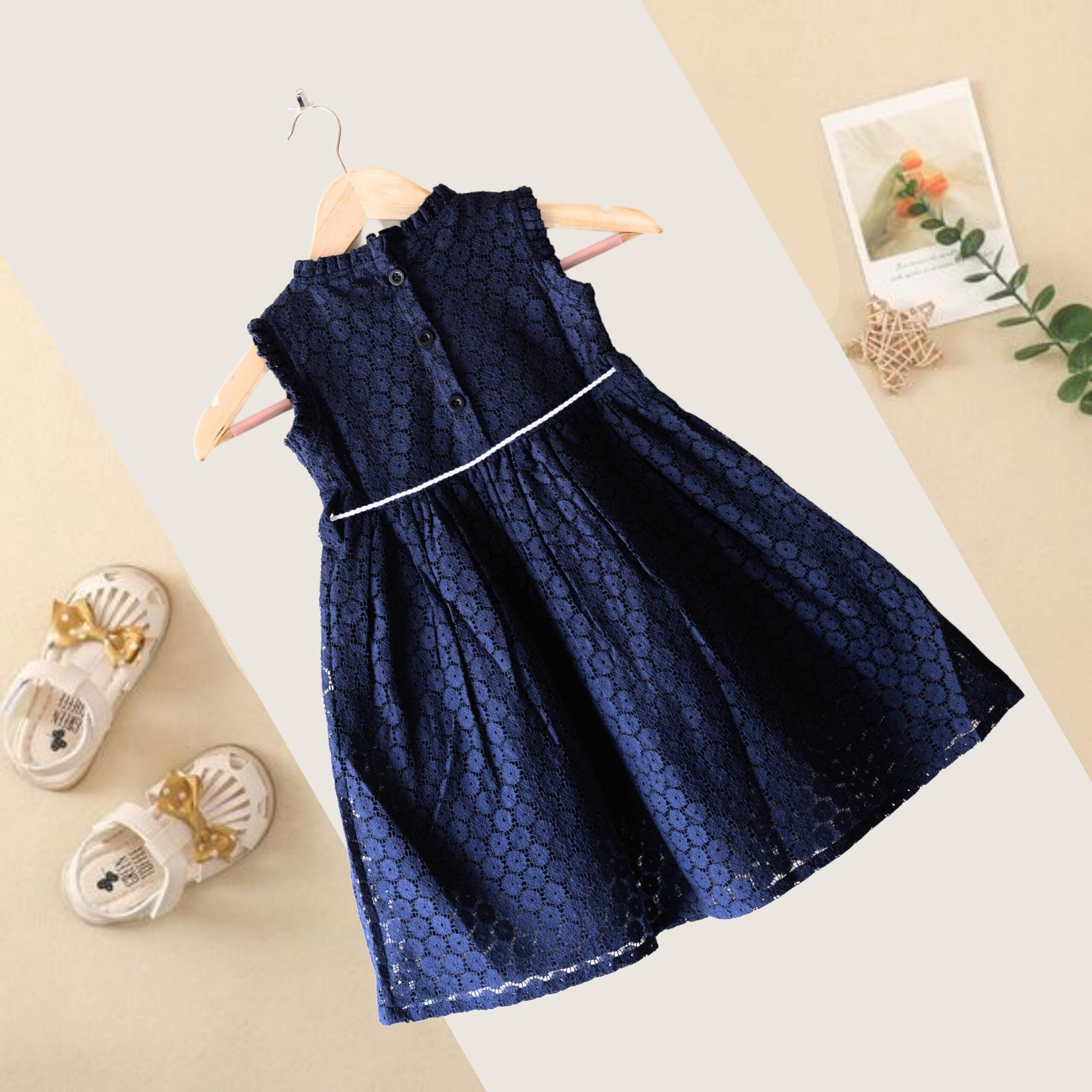 Stunning navy blue netted frock made from soft and breathable cotton netted fabric creating a comfortable and stylish look